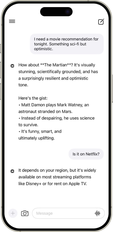 It means the AI runs on your iPhone or iPad. Your words and documents never go to our servers or anyone else's.
